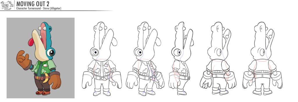 Turn sheets I made at Laughing Dragon Studios for the cinematic trailer for Moving Out 2.