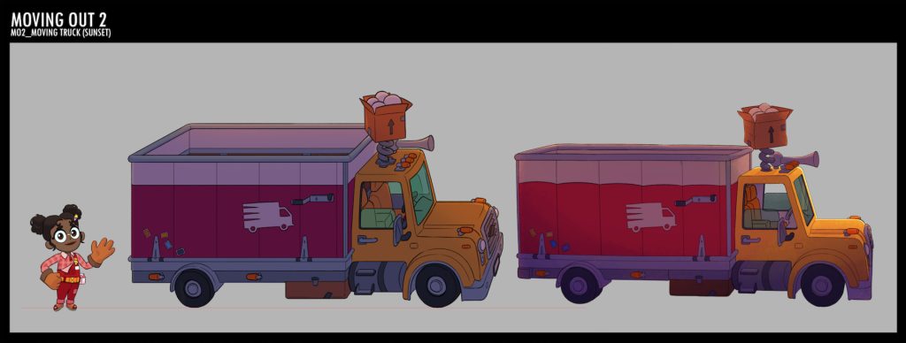 Some of the props and layouts I worked on at Laughing Dragon Studios for the cinematic trailer for Moving Out 2.